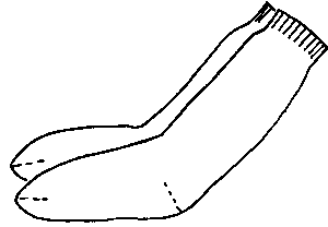 Toe: Work as for heel, but decrease until only 6 sts remain. When all sts are back in WP, remove each side separately on WY. Kitchener st (graft) toe sts. Whip stitch side seam, taking just the outside loop of each stitch for a flat seam.