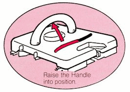 Now for the carriage. First, raise the handle, push it toward the rear, and snap into place.