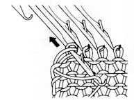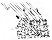 Bring needle forward so that both loops of yarn go back behind the latch. Take the yarn strand into the hook.
