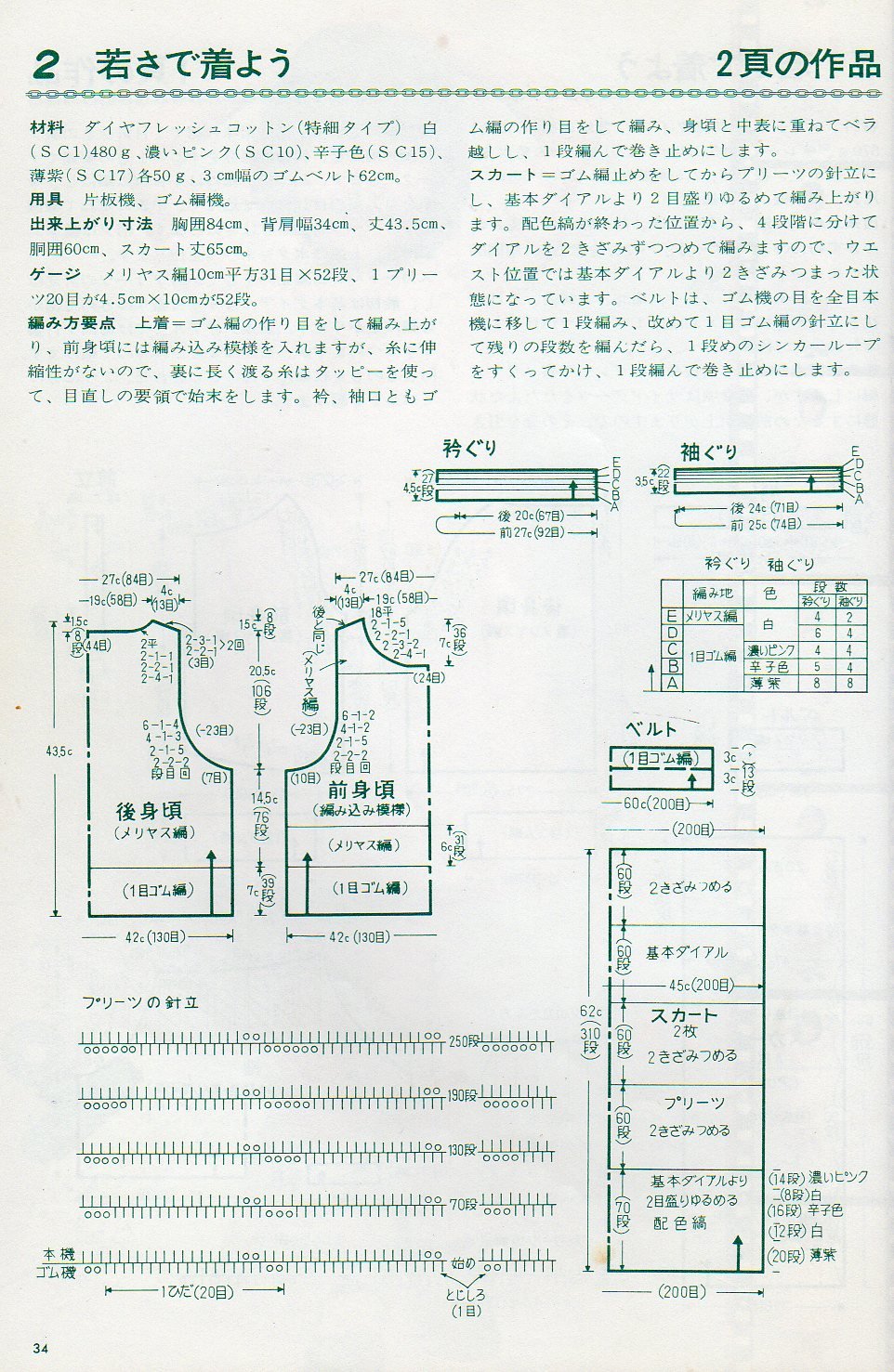 I learned to chart machine knitting patterns in 1974, using Studio’s Silver Knitting Book which was written in 1963. The method in this book is very similar to that used by current Japanese publishing companies (probably because it was written, printed, and copyrighted in Japan!) It uses the shaping formula of stitches-rows-times, which I prefer; it is the formula used in most, but not all, American charted patterns. Japanese patterns, on the other hand, almost always use the formula of rows-stitches-times. It is very important to know which method is used in the pattern, and we will cover it in future lessons.