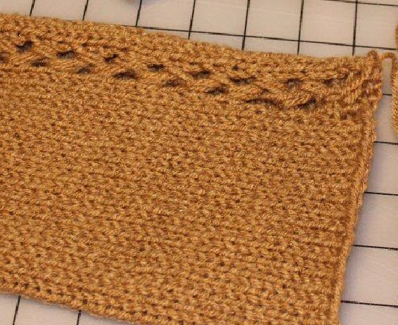 It is extremely important that the edge stitches knit off cleanly, with no dropped stitches, split stitches, or tucked stitches. Move the edge weights up about every 20 rows to help with this.