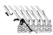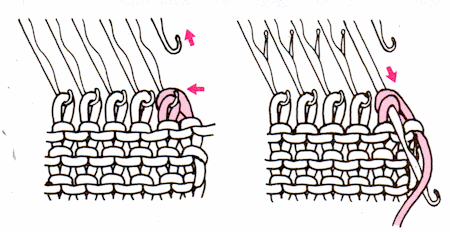 Bring needle forward so that both loops of yarn go back behind the latch. Take the yarn strand into the hook.