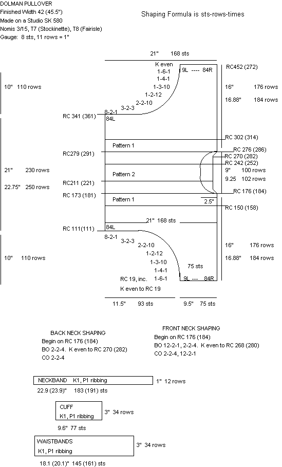 Dolman Pullover Chart