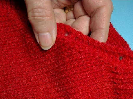 Hold sweater with purl side facing you, knit side toward the machine. Pick up 62 stitches from