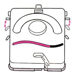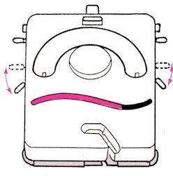 Side Levers. These are located on the sides of the carriage, near the back. The normal position for these levers is back, on the ▲ (triangle.) This is where the levers should be set all the time, except when knitting slip stitch and Fairisle patterns.