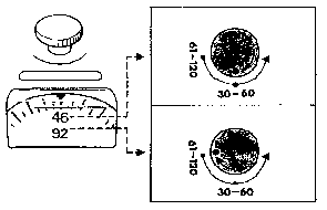 8. Change Dial. Select the position of 30–60, or 61–120 according to the row reading from the Tension Swatch