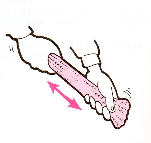 The fabric has been stretched widthwise while knitting. Roll the swatch lengthwise into a tube and give it a couple of sharp tugs to help pull the stitches into shape. Some old patterns refer to this step as “tubing”; the term really isn’t used much now, but if you see it in an older pattern, this is what it means.