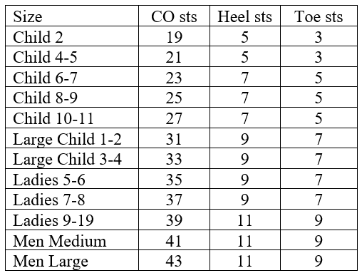 Complete Written Instructions for Child Shoe Size 10-12, With Chart for Other Sizes