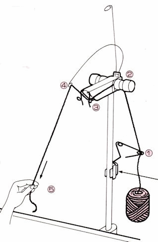 This is the threading diagram. We will thread the yarn through the right side of the autotension, as follows: