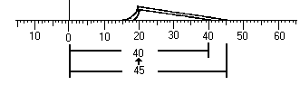 One other shaping technique that you will use frequently with Knit Contour patterns is Partial Knit (short row) increasing. The illustration below shows the top edge of a pair of slacks which are knitted from the waist down. The original pattern shows 22 stitches in hold pos. As the paper advances, the Contour shows 9 stitches at the point where the line crosses the Stitch Scale. Carriage should be at right side of bed. Return 13 neeedles to pos C on left side, leaving all remaining stitches in hold. Knit across and back. Check Contour pattern to see how much the line has moved, and return required stitches to pos C. Increase on right side as well, whenever the line moves over 1 mark on the Stitch Scale